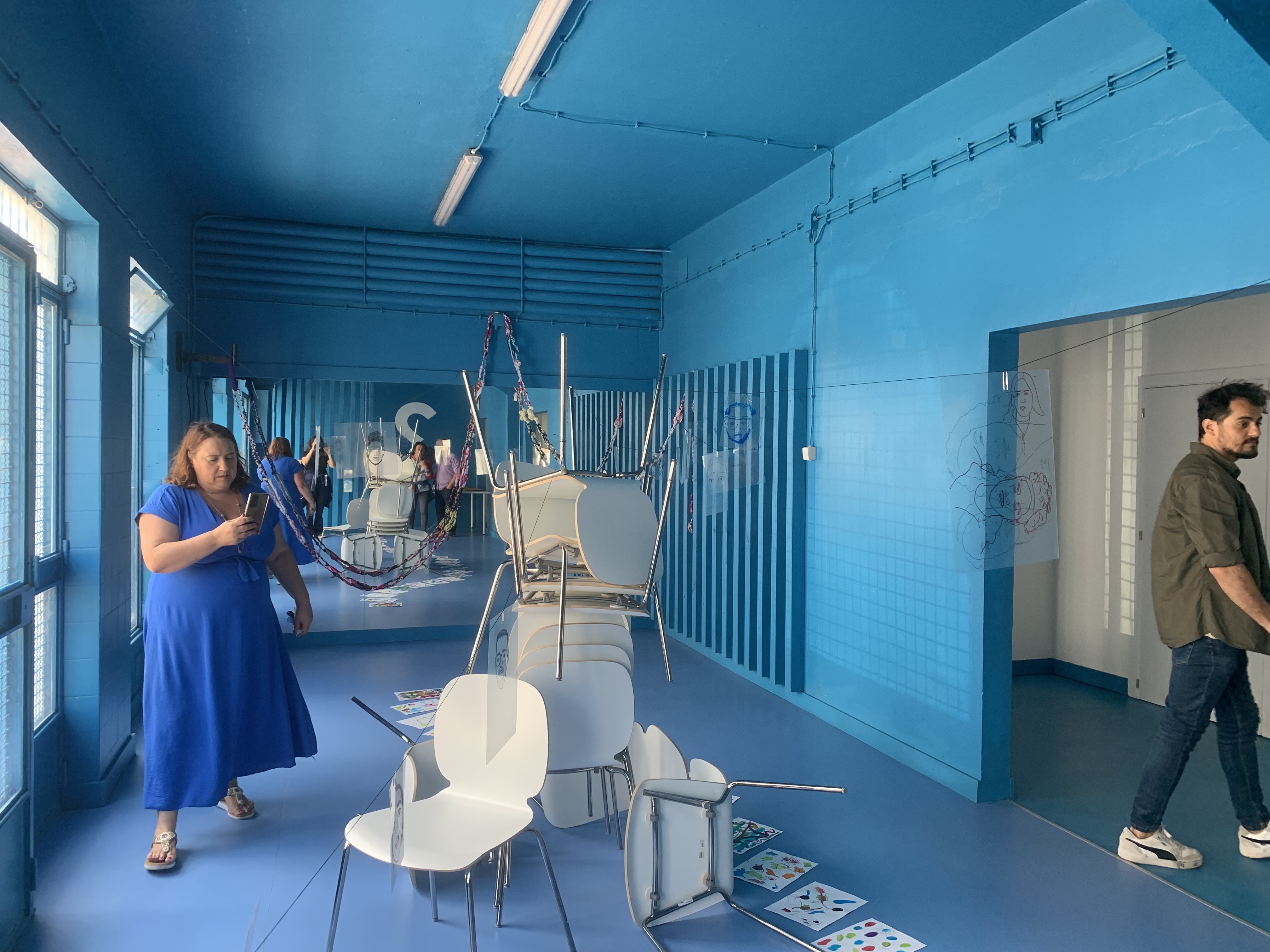 The second project, Aceleradora Tech Ocidental, began in 2022 and was mainly developed during the first semester of 2023. This participatory project was aimed at skills’ development to underserved populations living at Bairro 2 de Maio, again working together with students, and this time, including external volunteer participants. The group of participants in the art workshop series consisted mostly of senior women, children and teens, a few young adults and a smaller and less constant group of people with functional diversity. We implemented a partnership with a separate project in participatory action theatre, being develop in the same period at the Palácio da Ajuda, which neighbours the Bairro 2 de Maio, and ended up both working together in a few art activities, namely composite self-portraits on mirrors, and producing objects for the play. This collaboration gave us the opportunity of setting up two pop-up exhibitions at the Palácio da Ajuda, visited by larger audiences on the days that the play took place.