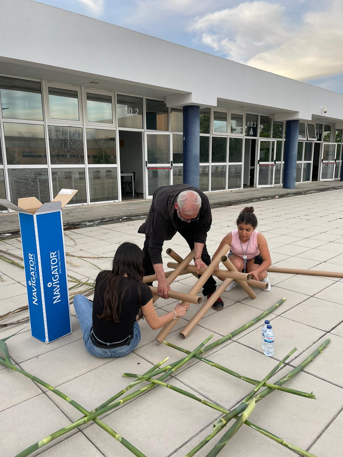 Below, we can see a collection of composite participatory self-portraits on mirrors, shown in the first exhibition, and some of the children and teen collecting bamboo canes in the area next to the faculty and building a grid with external participants.